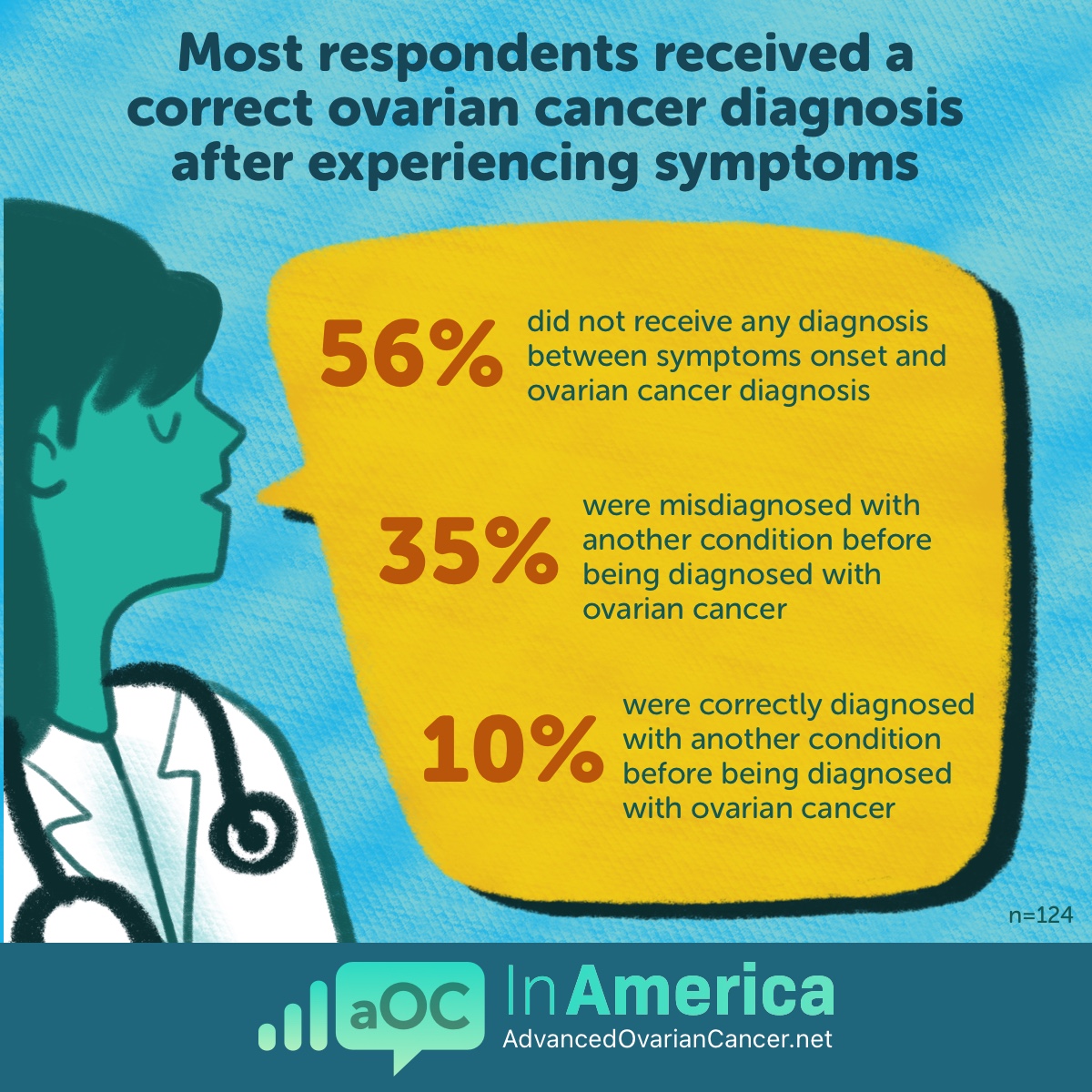 The events that lead up to an ovarian cancer diagnosis can be overwhelming and unclear. There can be a number of emotions to navigate while also navigating doctor's appointments, scans, and symptoms. Many find themselves seeking a second or third opinion from different doctors or healthcare providers. While 23 percent of respondents only saw one doctor before being diagnosed with ovarian cancer, 42 percent saw two doctors, and 21 percent saw three.